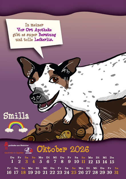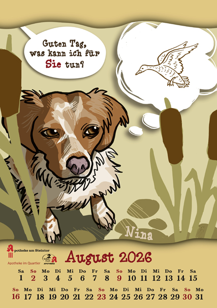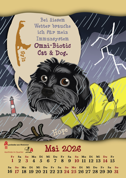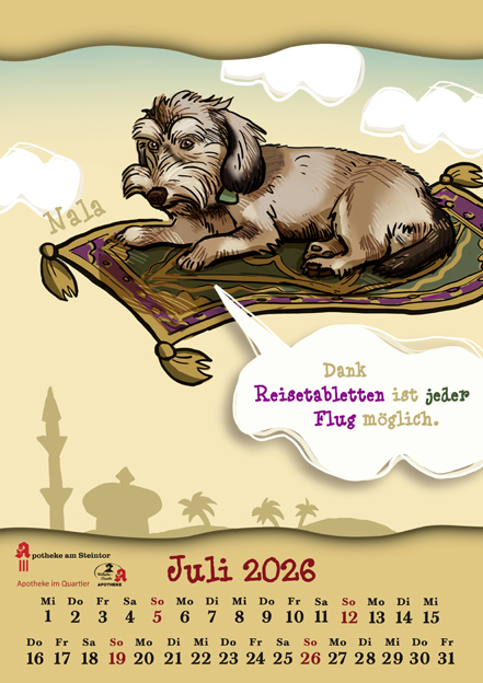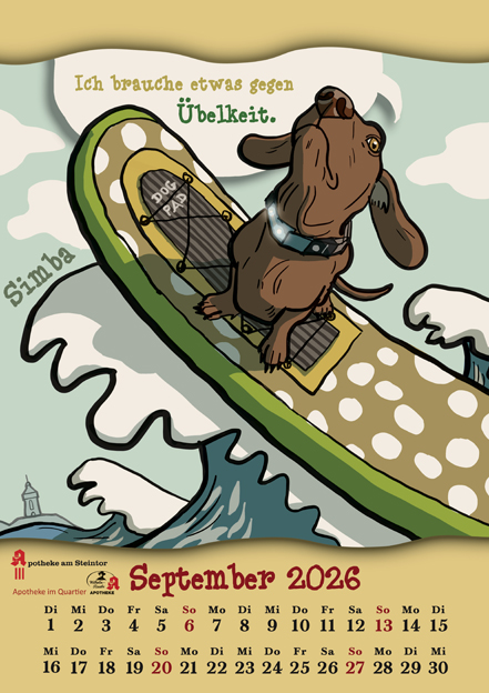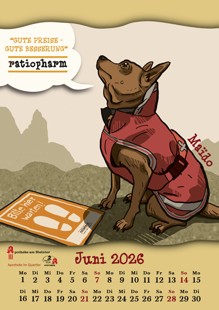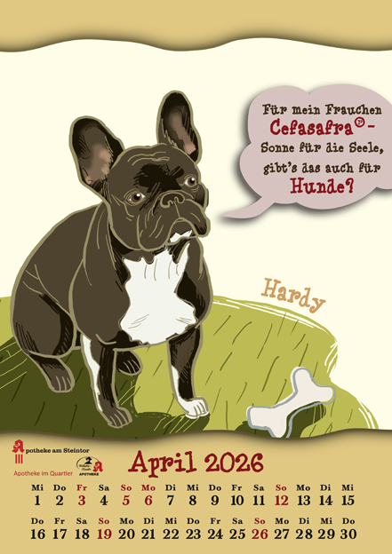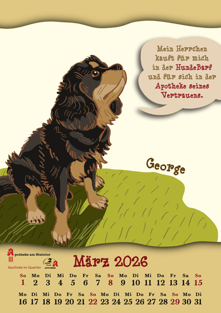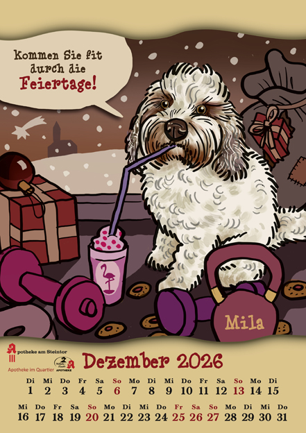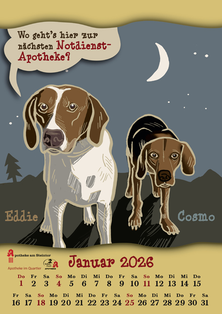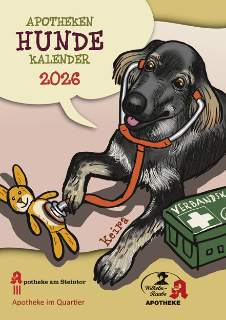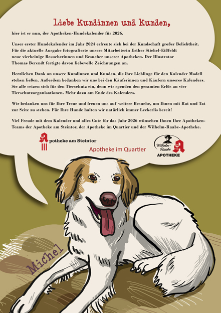 Diesen wunderschönen Apotheken-Hunde-Kalender können Sie ab dem 19.12.2025 in folgenden Braunschweiger Apotheken für 15,- € erwerben.